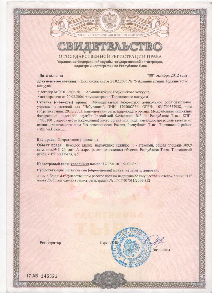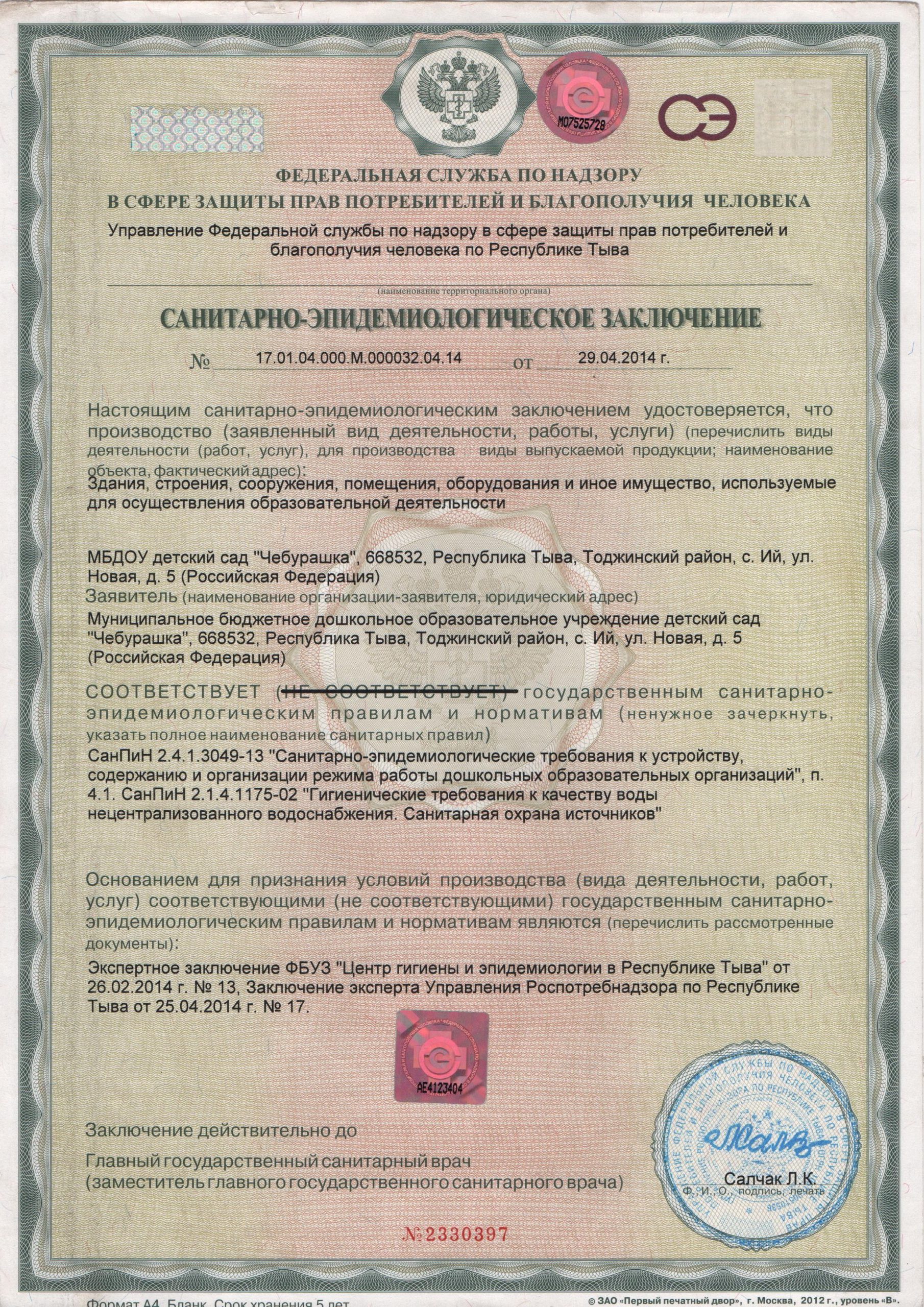 Документы Локально-нормативные акты Лицензия детского сада ЧебурашкаСкачать Тех. паспорт детского сада Чебурашка с. ИйСкачать Тех. паспорт кухни Чедурашка с.ИйСкачать Свидетельство на землю детского сада ЧебурашкаСкачать Свидетельство на нежилое детского сада ЧебурашкаСкачать ОГРНСкачать Положение о кружковой работе ДОУСкачать Положение адаптации ДОУСкачать Положение о педагогическом совете ДОУСкачать Положение организации СЗДСкачать Аккредитация Отчет о результатах самообследования детского сада ЧебурашкаСкачать Предписания органов, осуществляющих государственный контроль (надзор) в сфере образования Санитарно-эпидемиологическое заключение Скачать Устав Устав ДОУСкачать